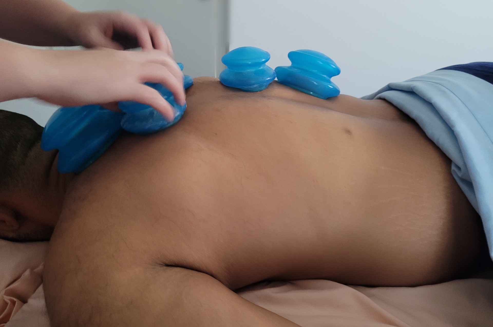 Cupping therapy is a technique that involves placing silicone cups on the skin to create suction and improve blood flow. Cups can be placed static or moved dynamically for a variety of needs, such as scar tissue or digestive issues.